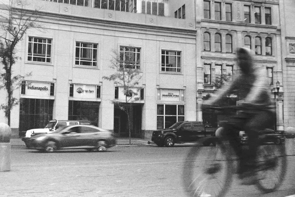 On Sunday I loaded up the roll of Tri x (24 exp) and we headed to town and monument circle downtown. I don’t ever go out with the idea I am shooting “Street” photography. I tend to think of my city walks broadly as “Urban Environment” which can opportunistically include street, Urban Landscape, Architectural detail and Urbex. But today I was purposefully shooting street and in Indianapolis, aside from the month of May, the circle is the best place in the city to do street.